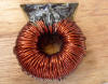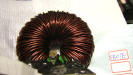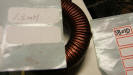 以12-AWG(20A)之鐵氟龍鍍銀線纏繞. 3顆之測值分別為116-113-117 uH(100KHz). |